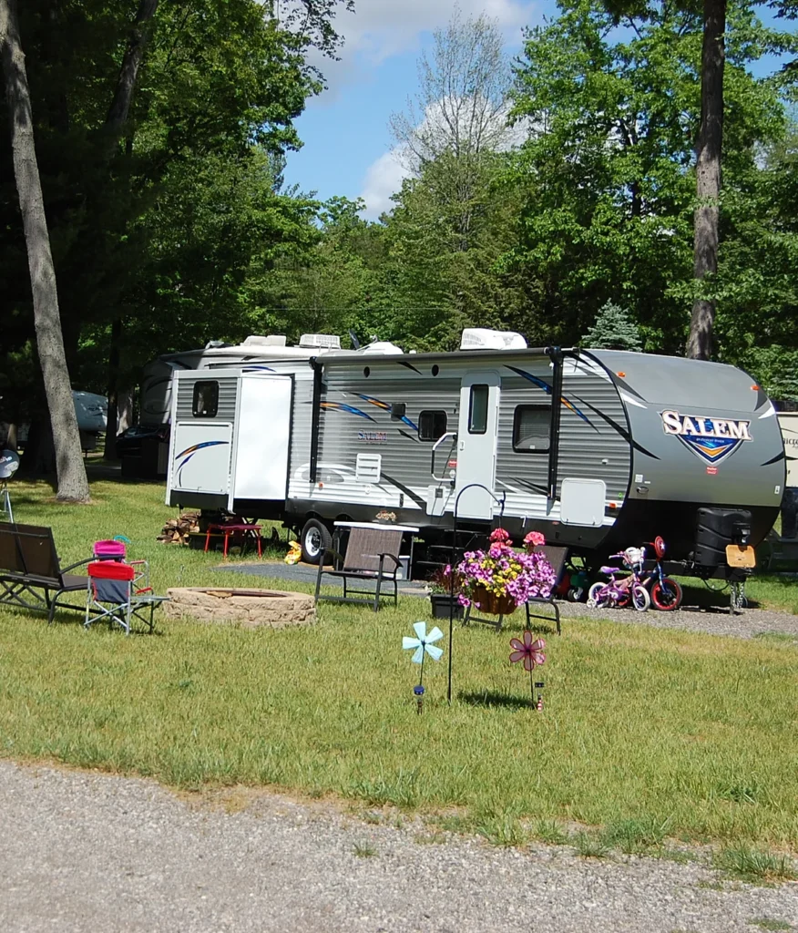 Crockery Creek RV Park is equipped to handle all your camping needs. We have 121 full hook-up campsites all with concrete pads for your camper and firepits.